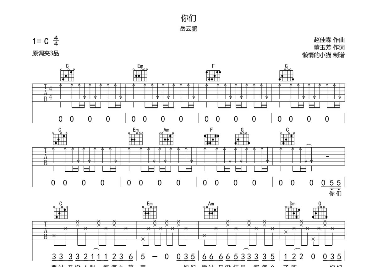 岳云鹏《你们》吉他谱 - C调弹唱六线谱