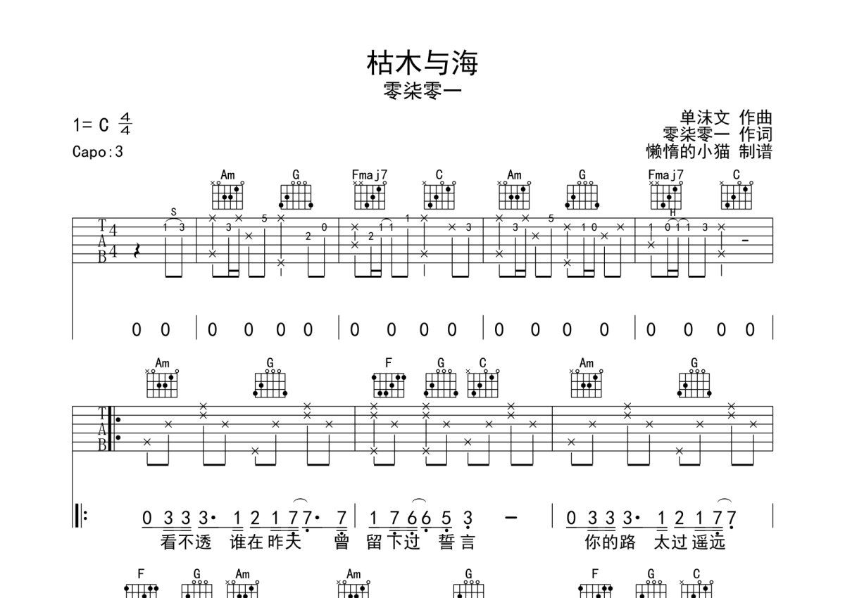零柒零一《枯木与海》吉他谱 - C调弹唱六线谱
