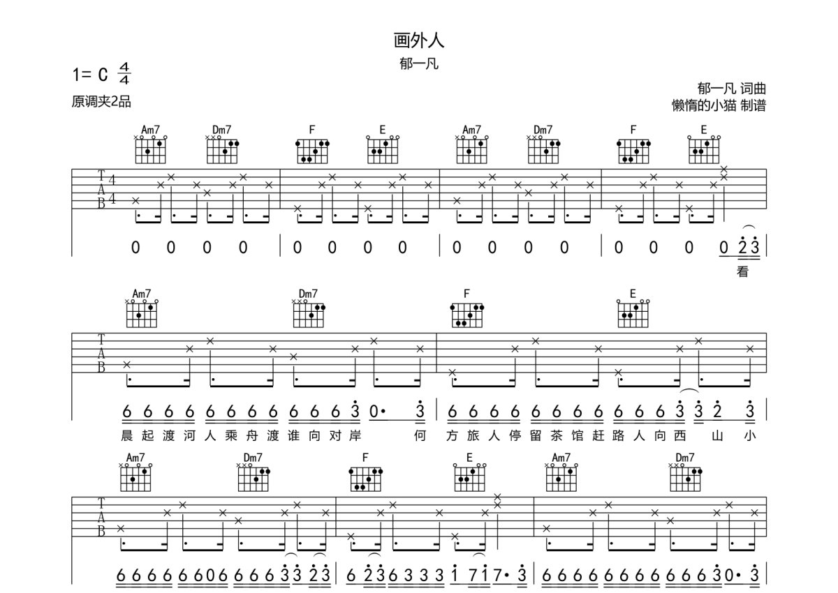郁一凡《画外人》吉他谱 - C调弹唱六线谱