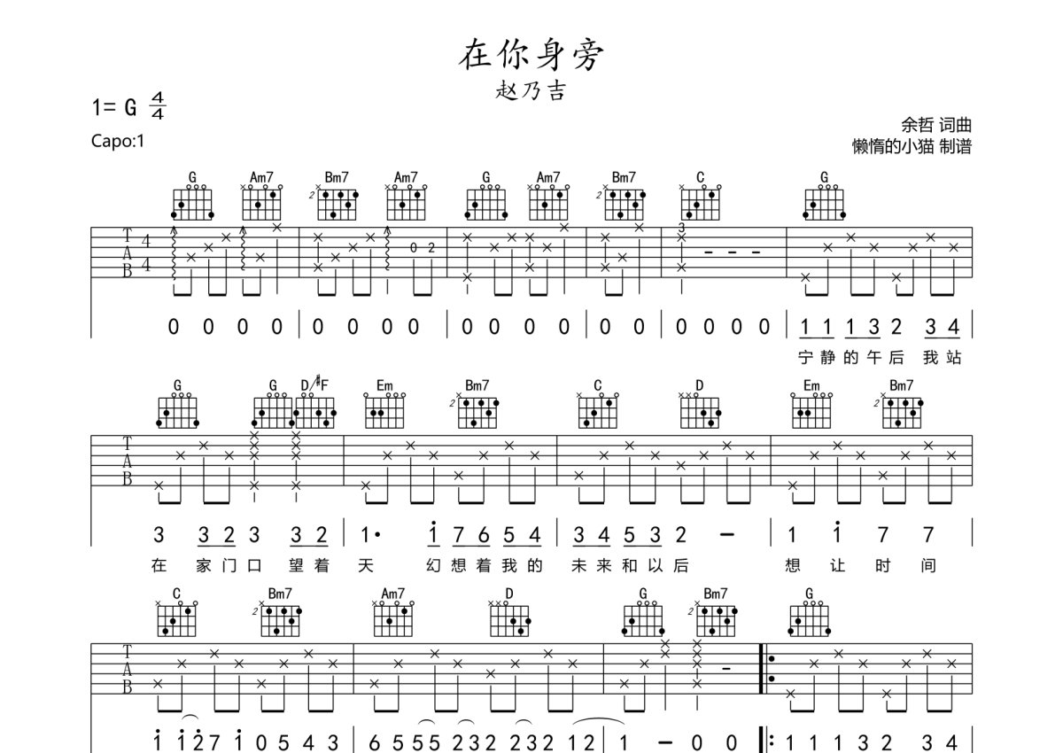 赵乃吉《在你身旁》吉他谱 - G调弹唱六线谱