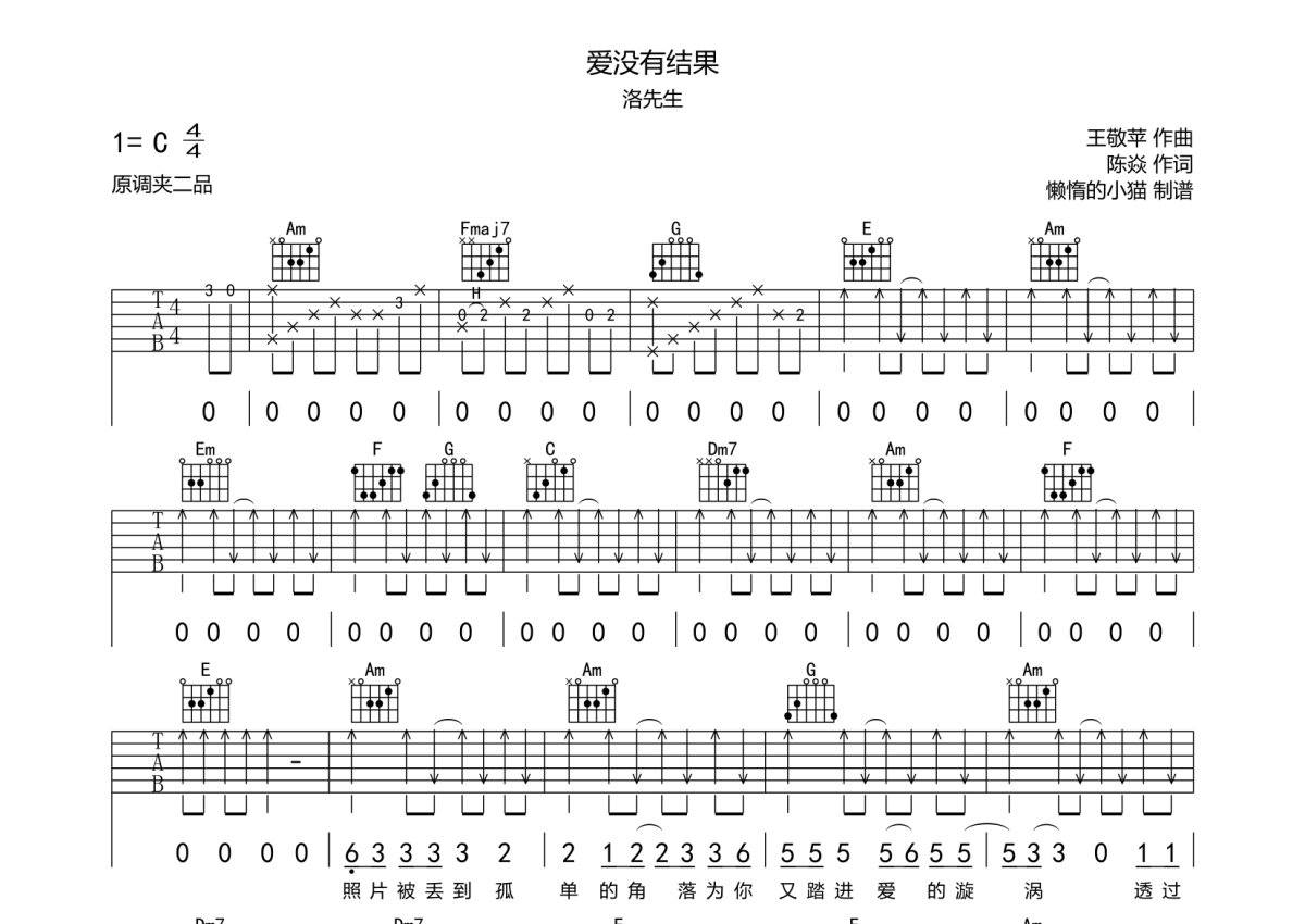 洛先生《爱没有结果》吉他谱 - C调弹唱六线谱