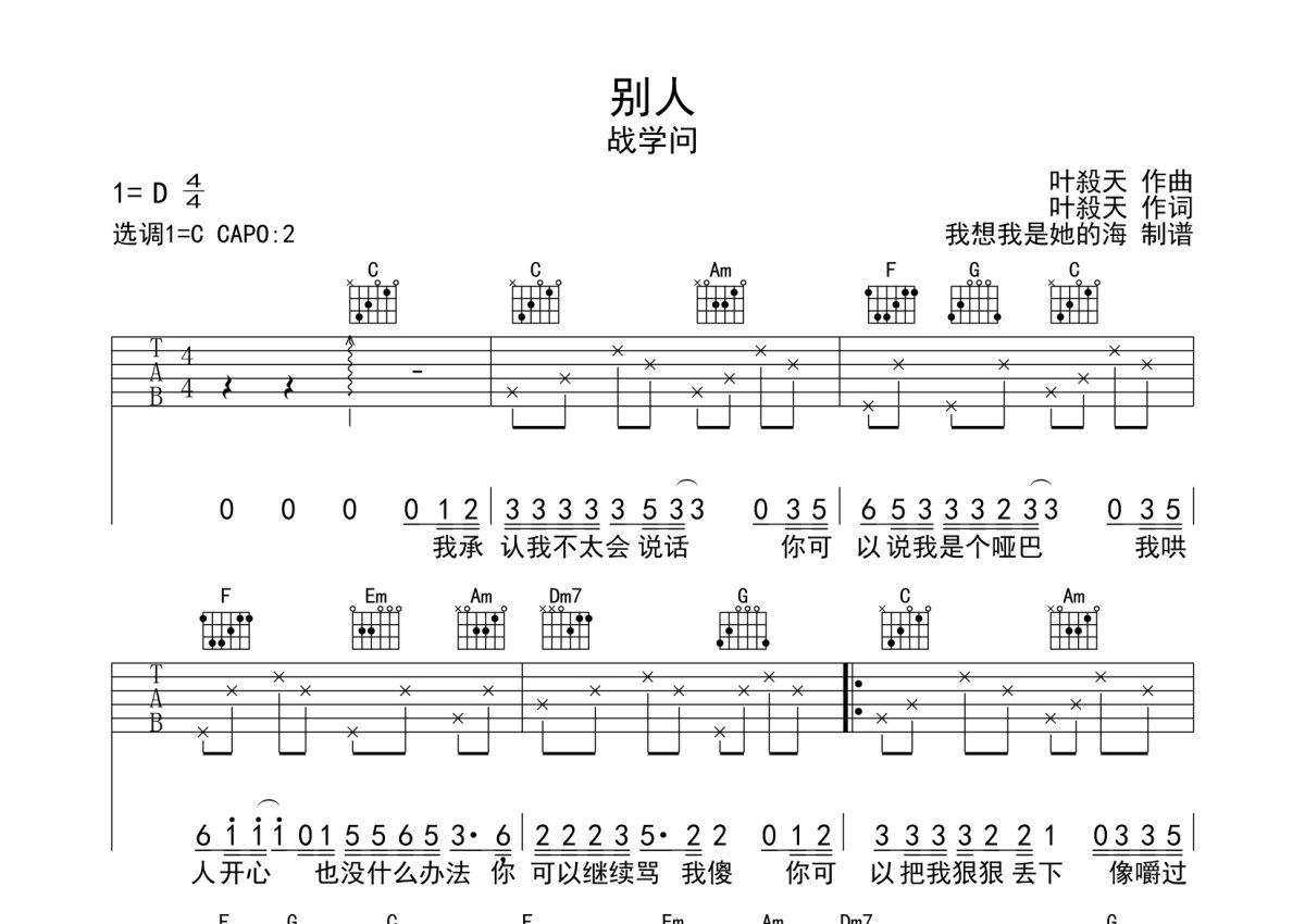 战学文《别人》吉他谱 - C调弹唱六线谱