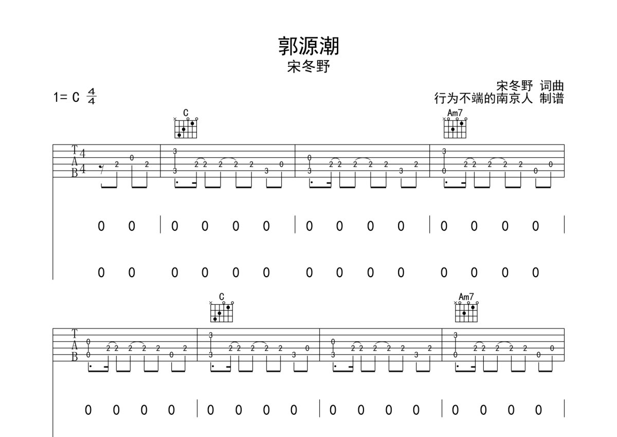 宋冬野《郭源潮》吉他谱 - C调弹唱六线谱