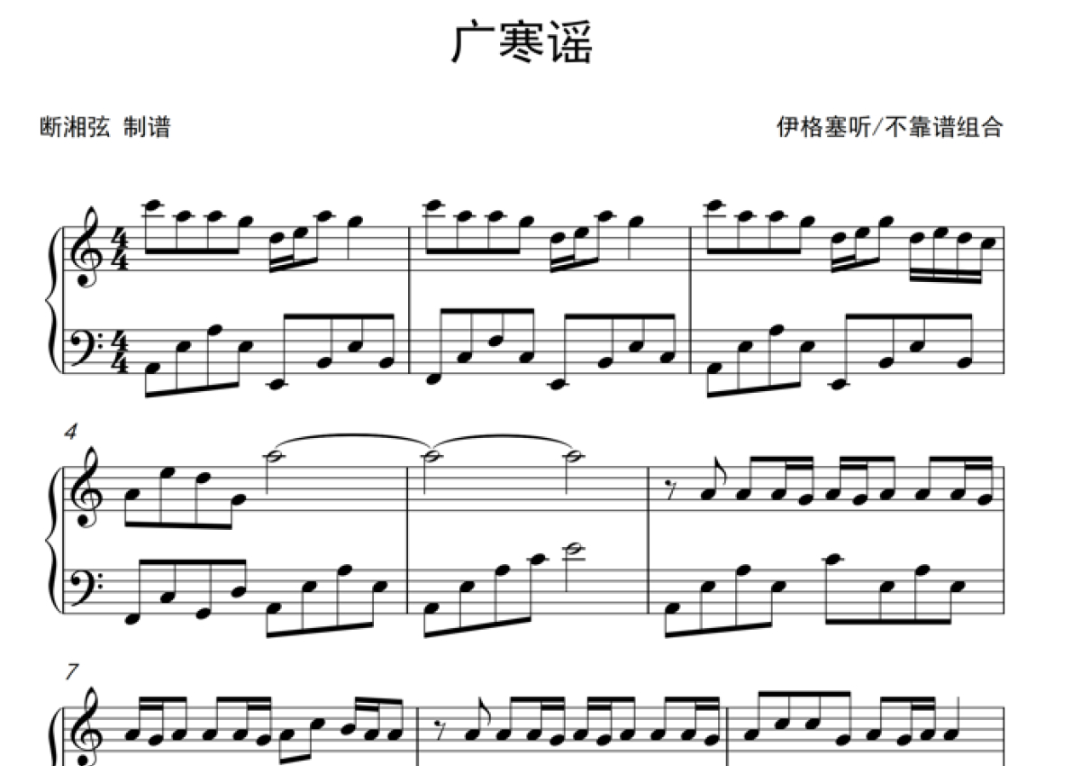 伊格塞听/不靠谱组合《广寒谣》钢琴谱