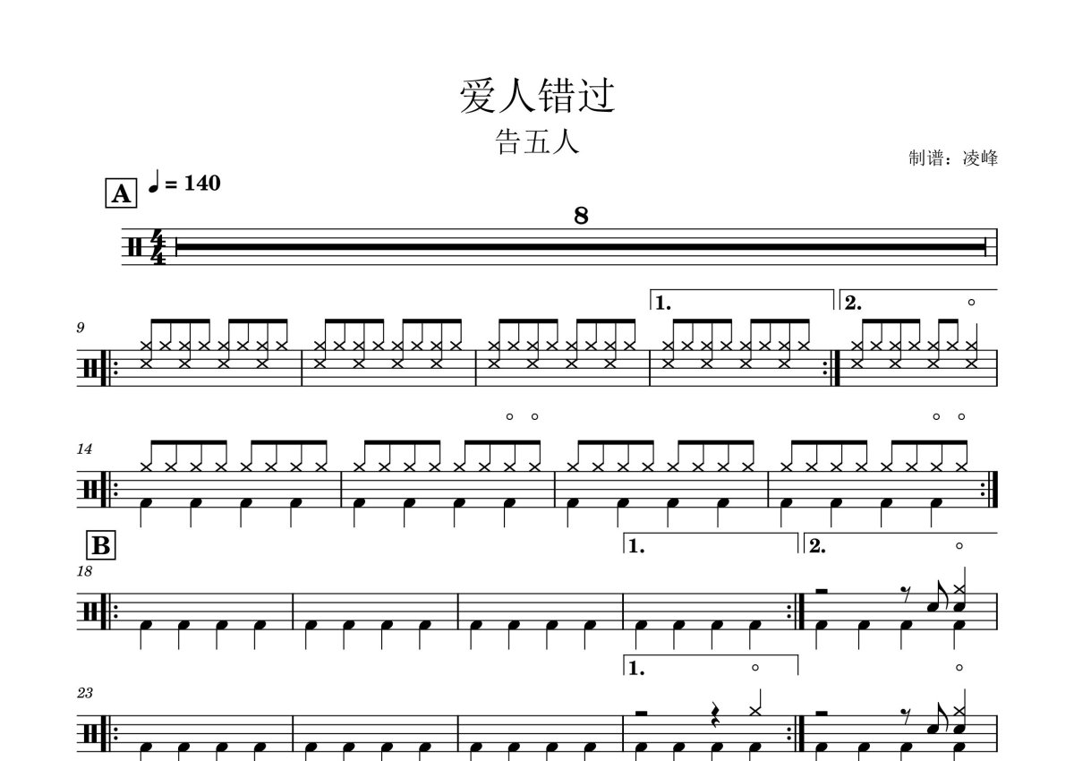 告五人乐队《爱人错过》鼓谱 - 架子鼓谱