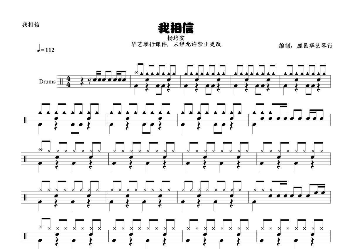 杨培安《我相信》鼓谱 - 架子鼓谱