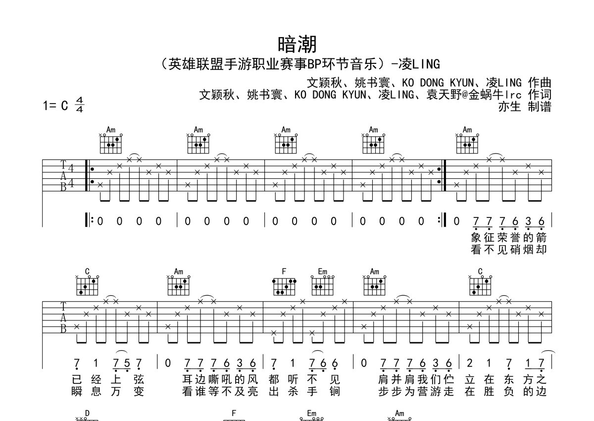 凌LING《暗潮》吉他谱 - C调弹唱六线谱