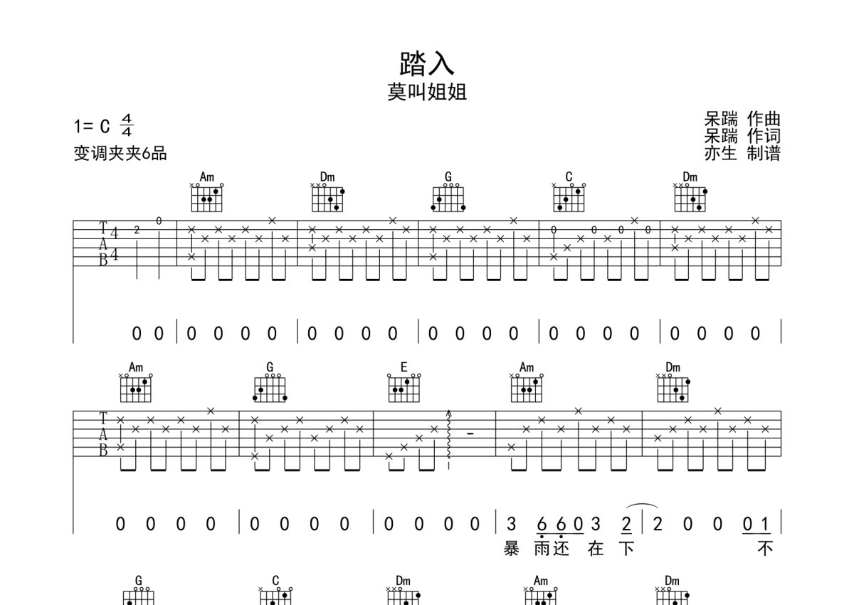 莫叫姐姐《踏入》吉他谱 - C调弹唱六线谱