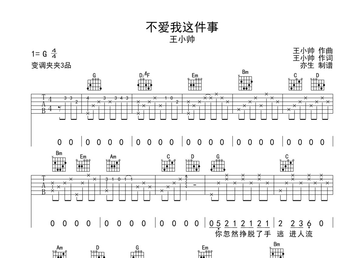 王小帅《不爱我这件事》吉他谱 - G调弹唱六线谱
