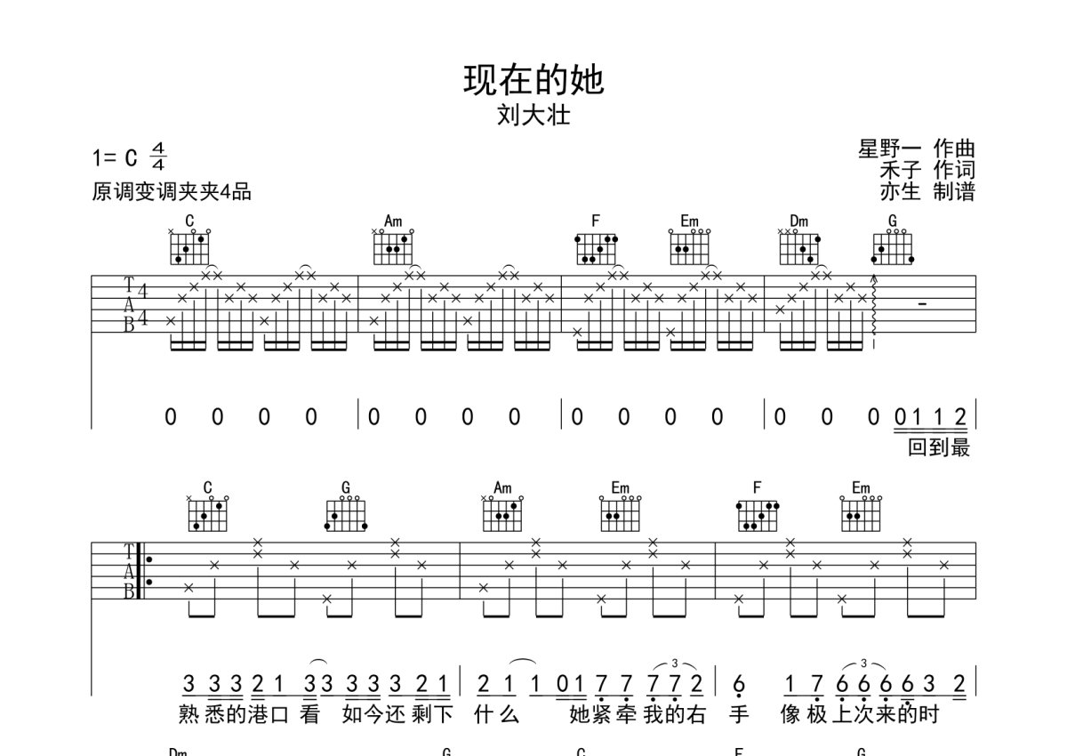 刘大壮《现在的她》吉他谱 - C调弹唱六线谱