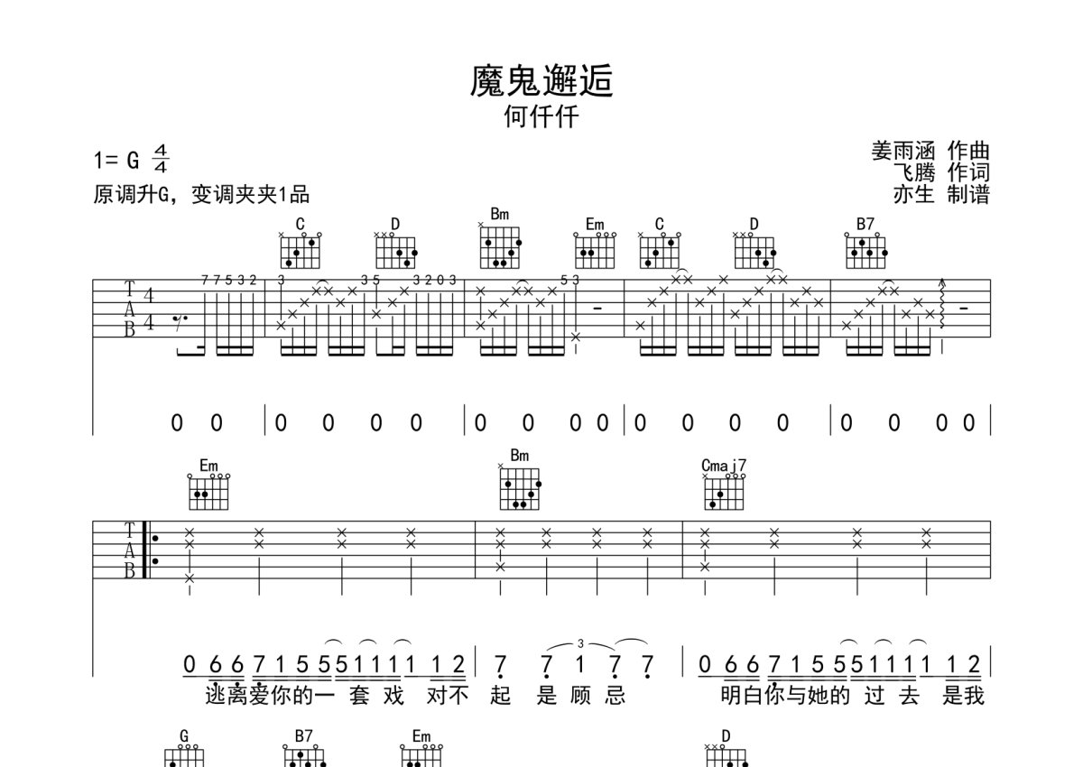 何仟仟《魔鬼邂逅》吉他谱 - G调弹唱六线谱