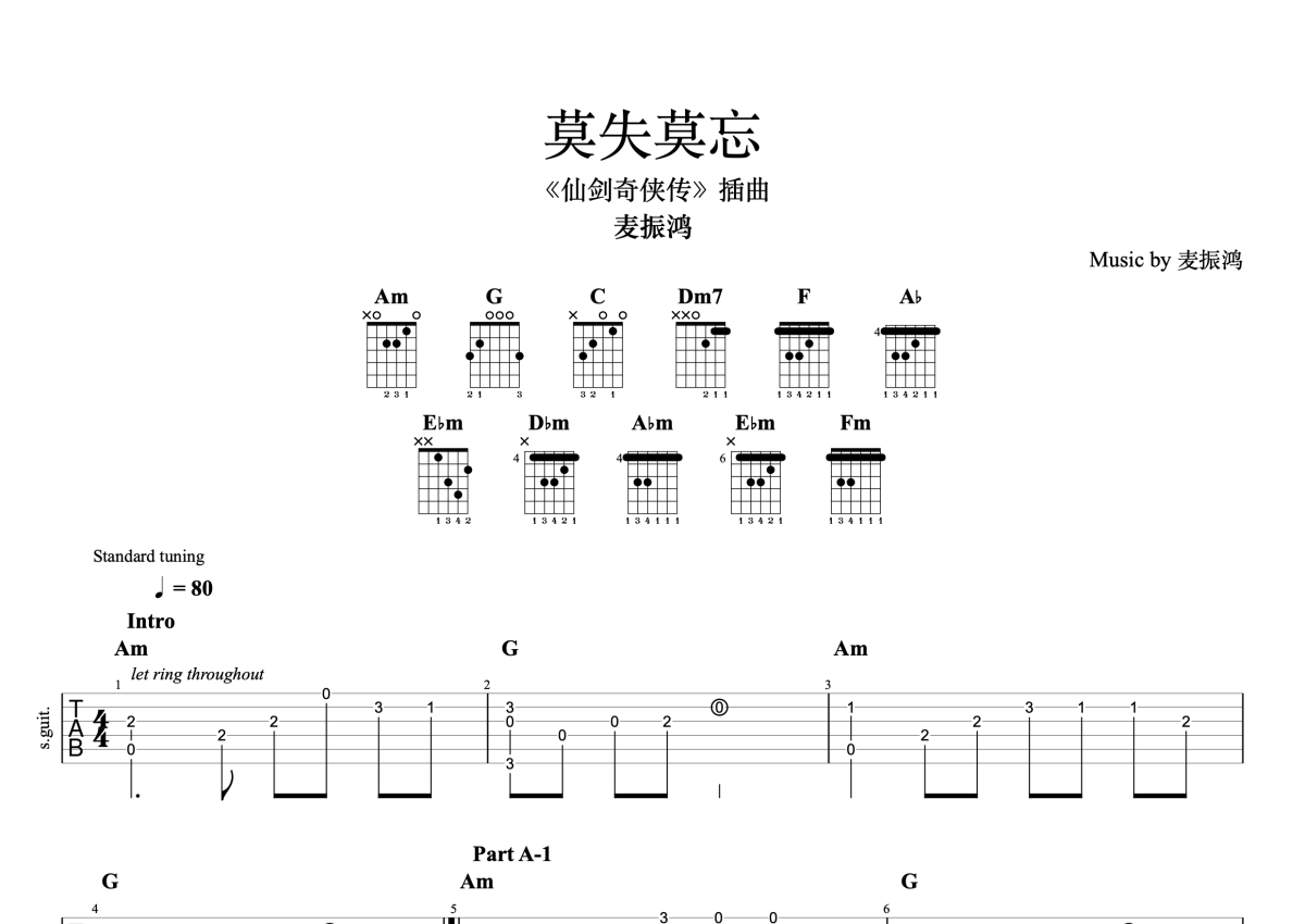 麦振鸿《莫失莫忘》吉他谱 - C调独奏六线谱 - 完整编配版