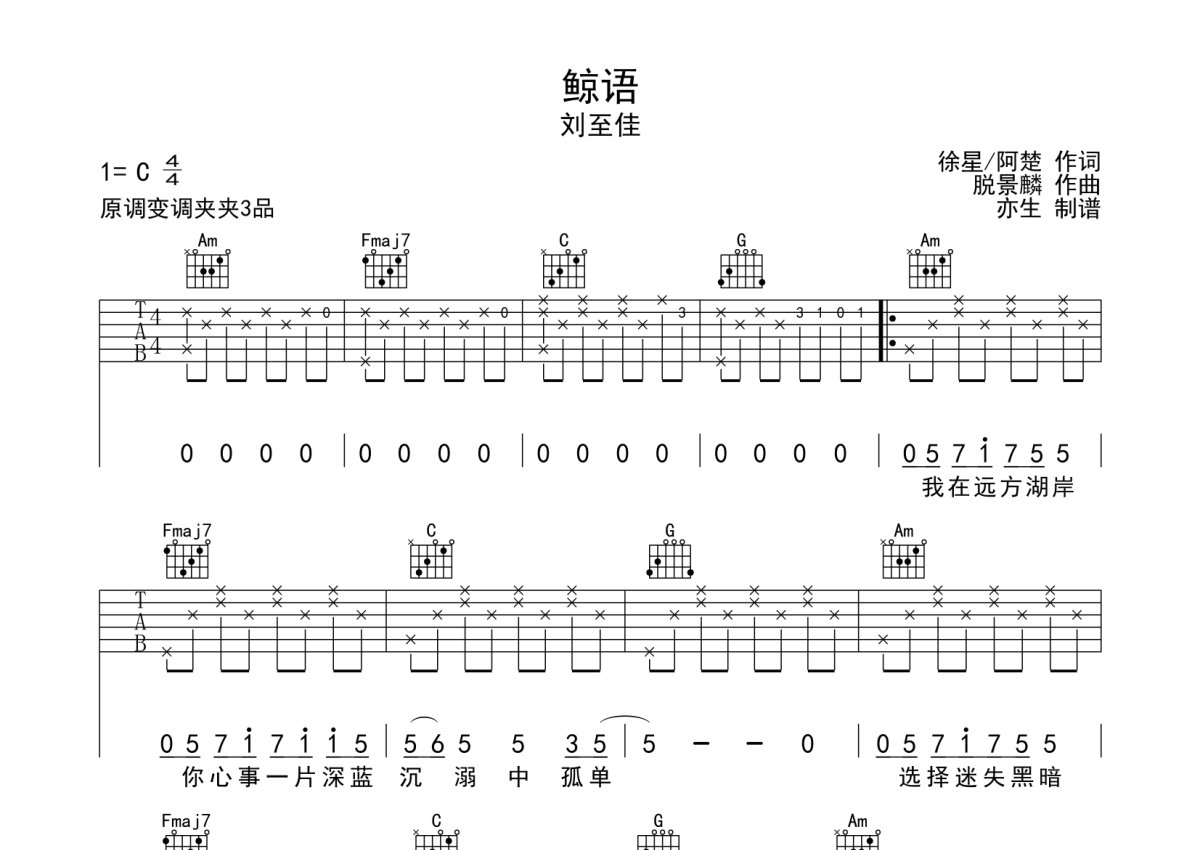 刘至佳《鲸语》吉他谱 - C调弹唱六线谱
