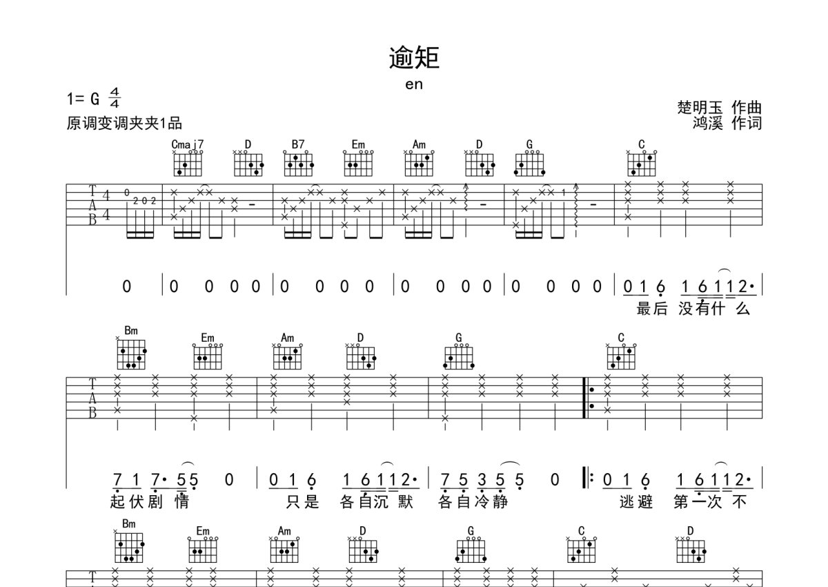 en《逾矩》吉他谱 - G调弹唱六线谱