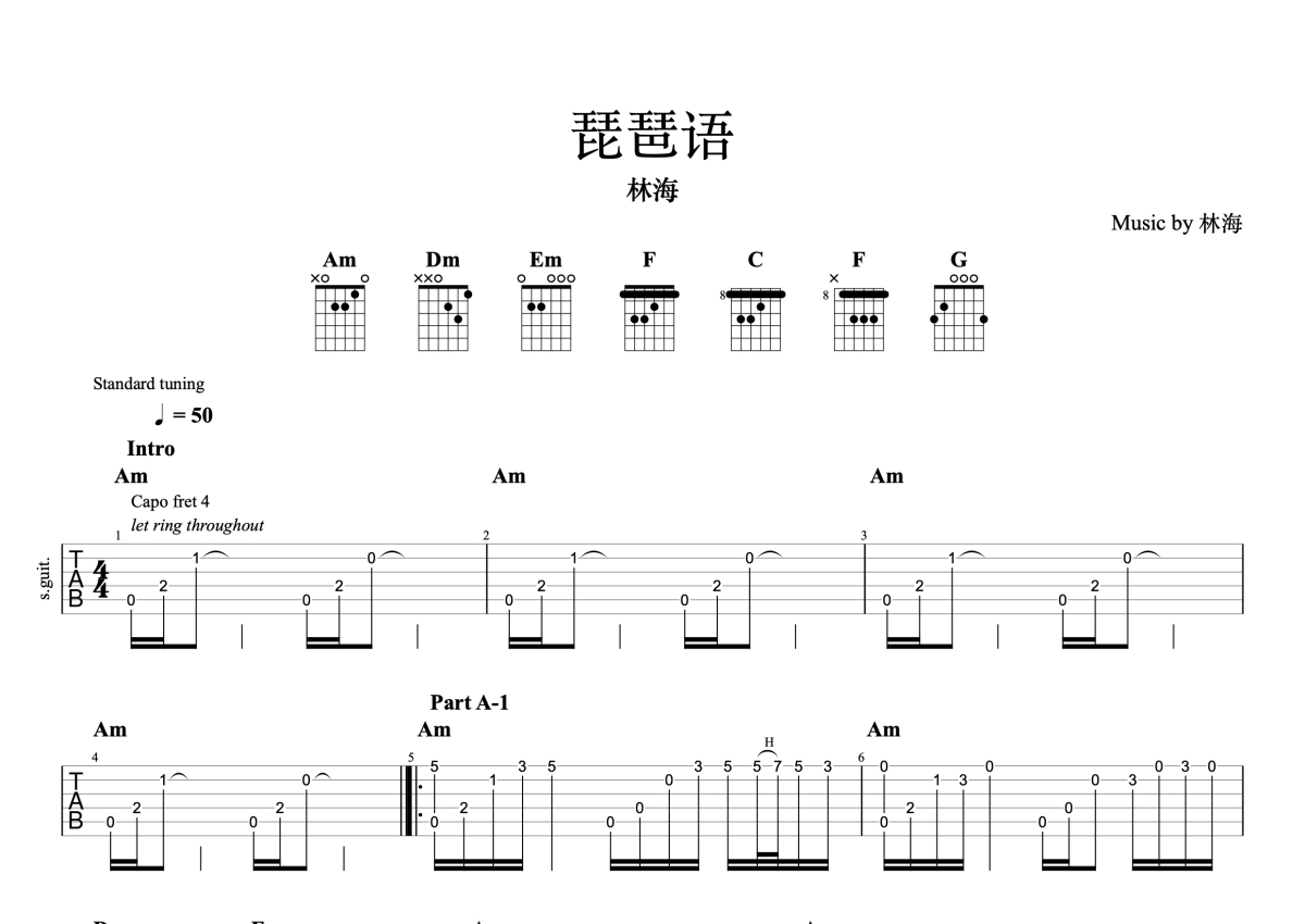林海《琵琶语》吉他谱 - C调独奏六线谱 - 完整编配版