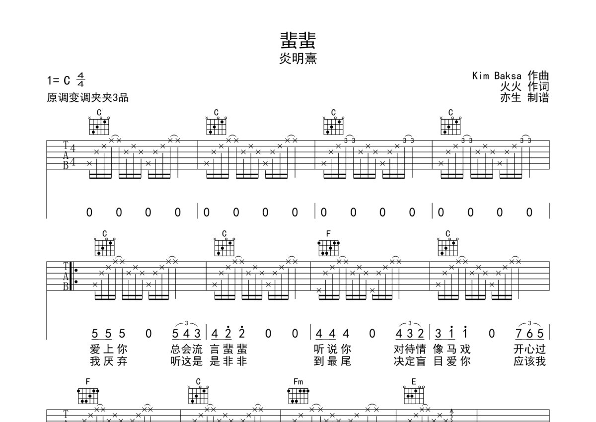 炎明熹《蜚蜚》吉他谱 - C调弹唱六线谱