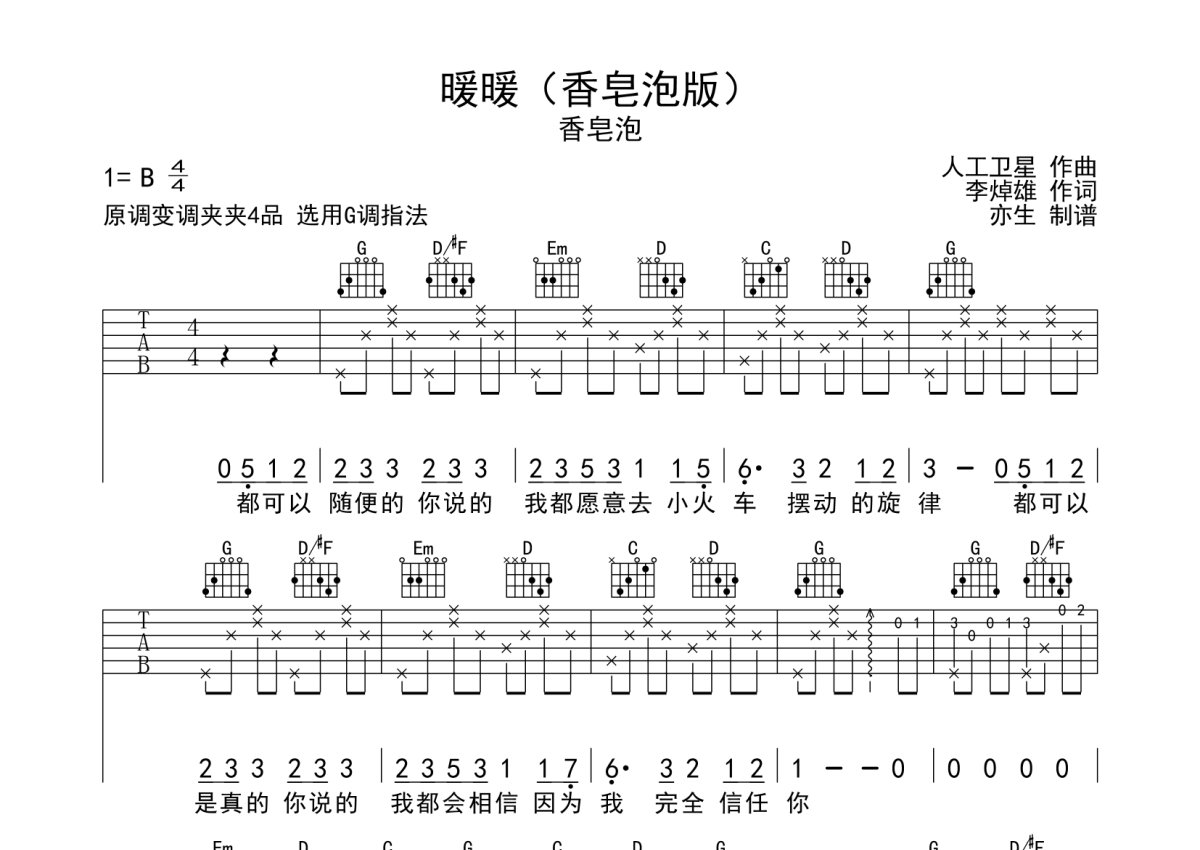 香皂泡《暖暖》吉他谱 - G调弹唱六线谱