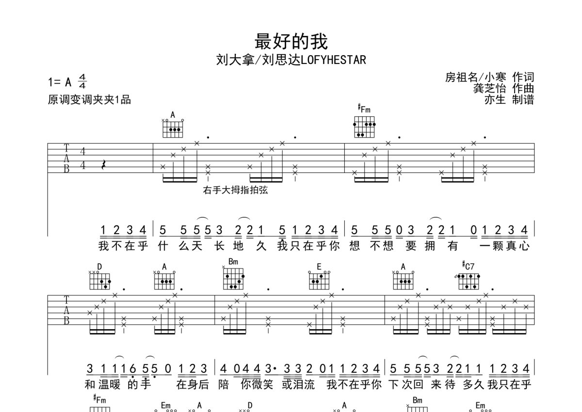 刘大拿《最好的我》吉他谱 - A调弹唱六线谱