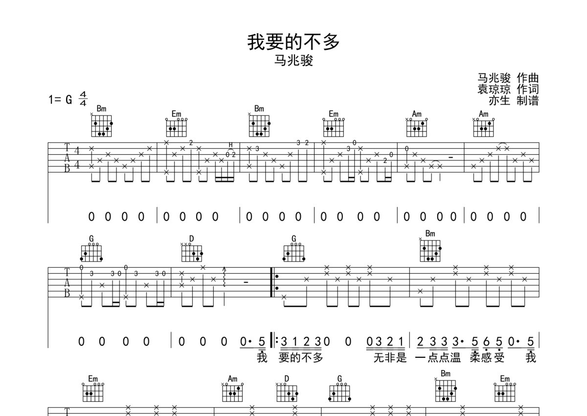 马兆骏《我要的不多》吉他谱 - G调弹唱六线谱