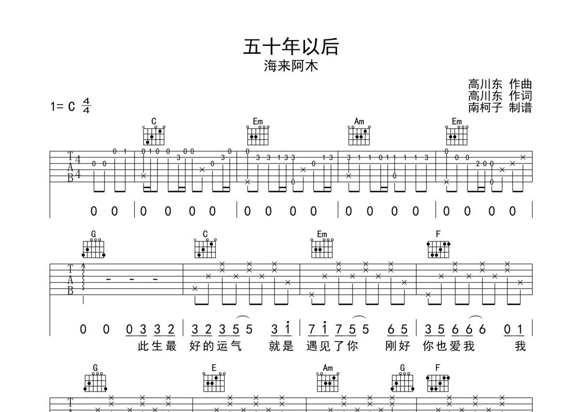 海来阿木《五十年以后》吉他谱 - C调弹唱六线谱