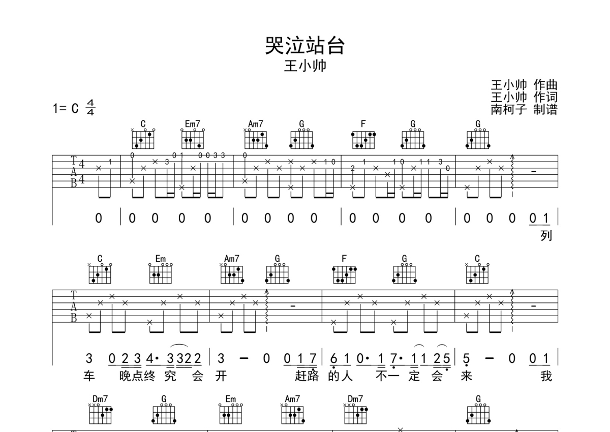 王小帅《哭泣站台》吉他谱 - C调弹唱六线谱