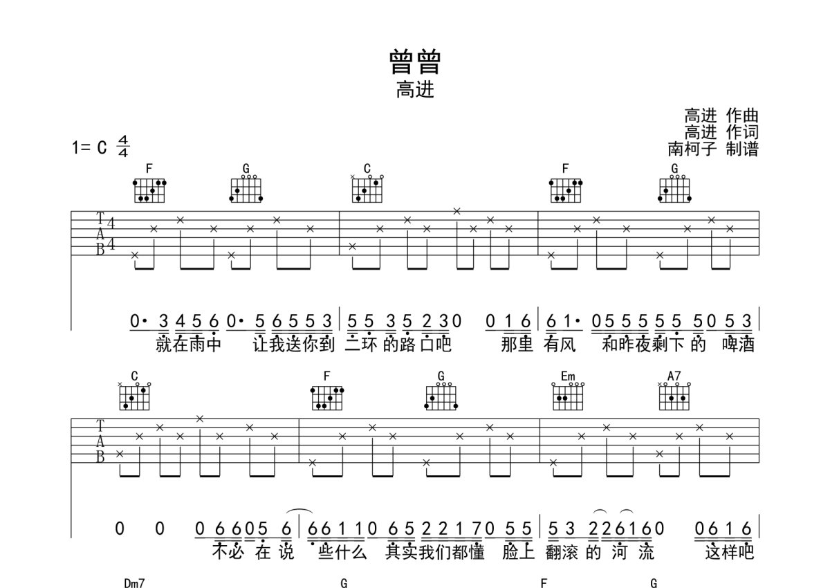 高进《曾曾》吉他谱 - C调弹唱六线谱