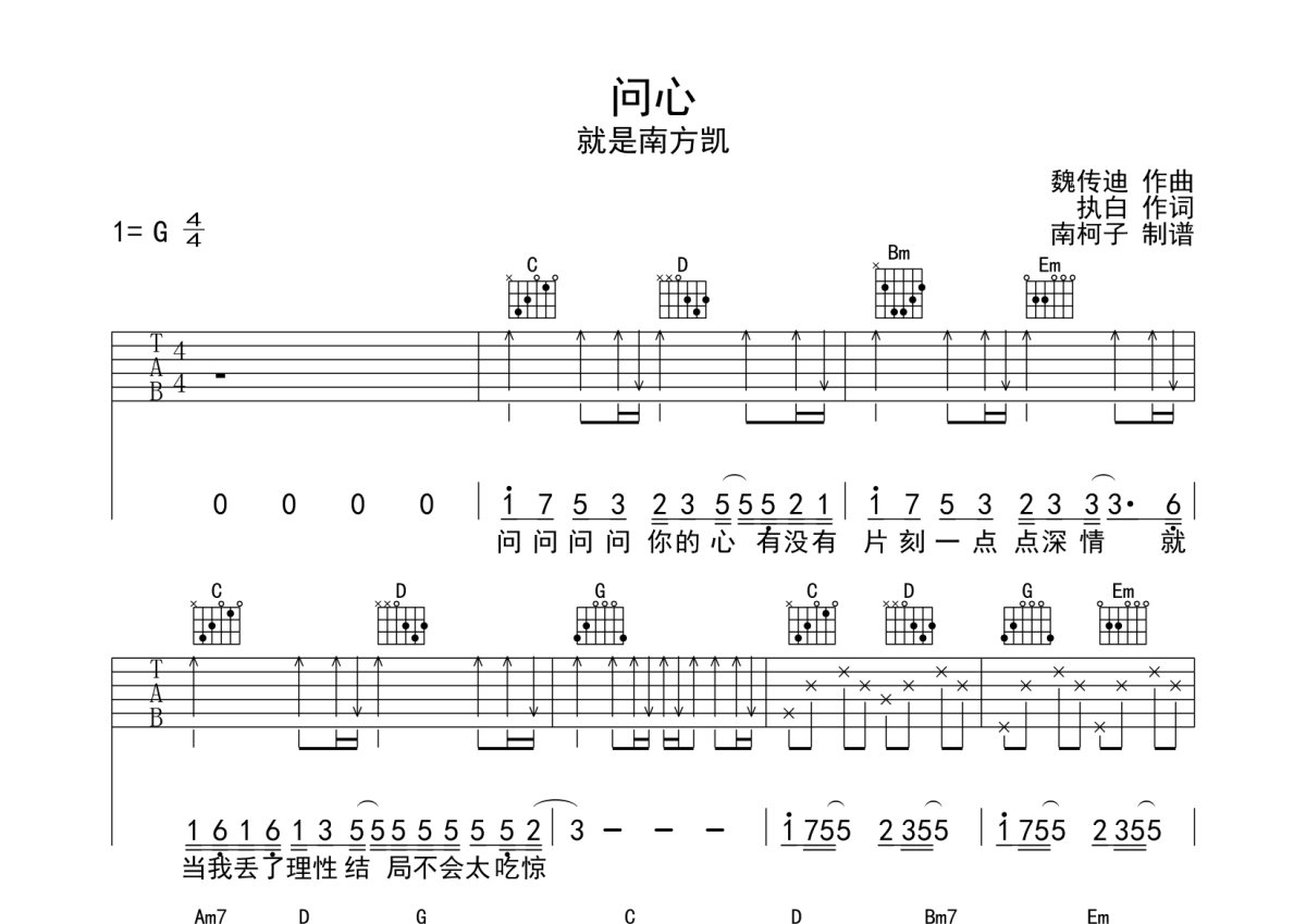 就是南方凯《问心》吉他谱 - G调弹唱六线谱