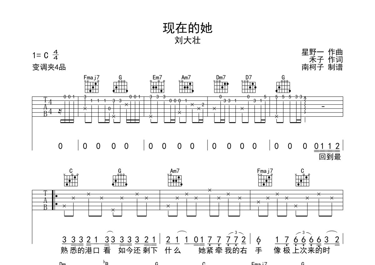 刘大壮《现在的她》吉他谱 - C调弹唱六线谱