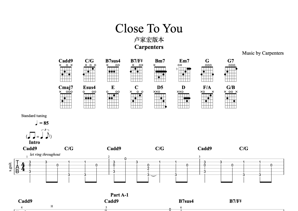Carpenters《Close To You》吉他谱 - G调独奏六线谱 - 完整编配版