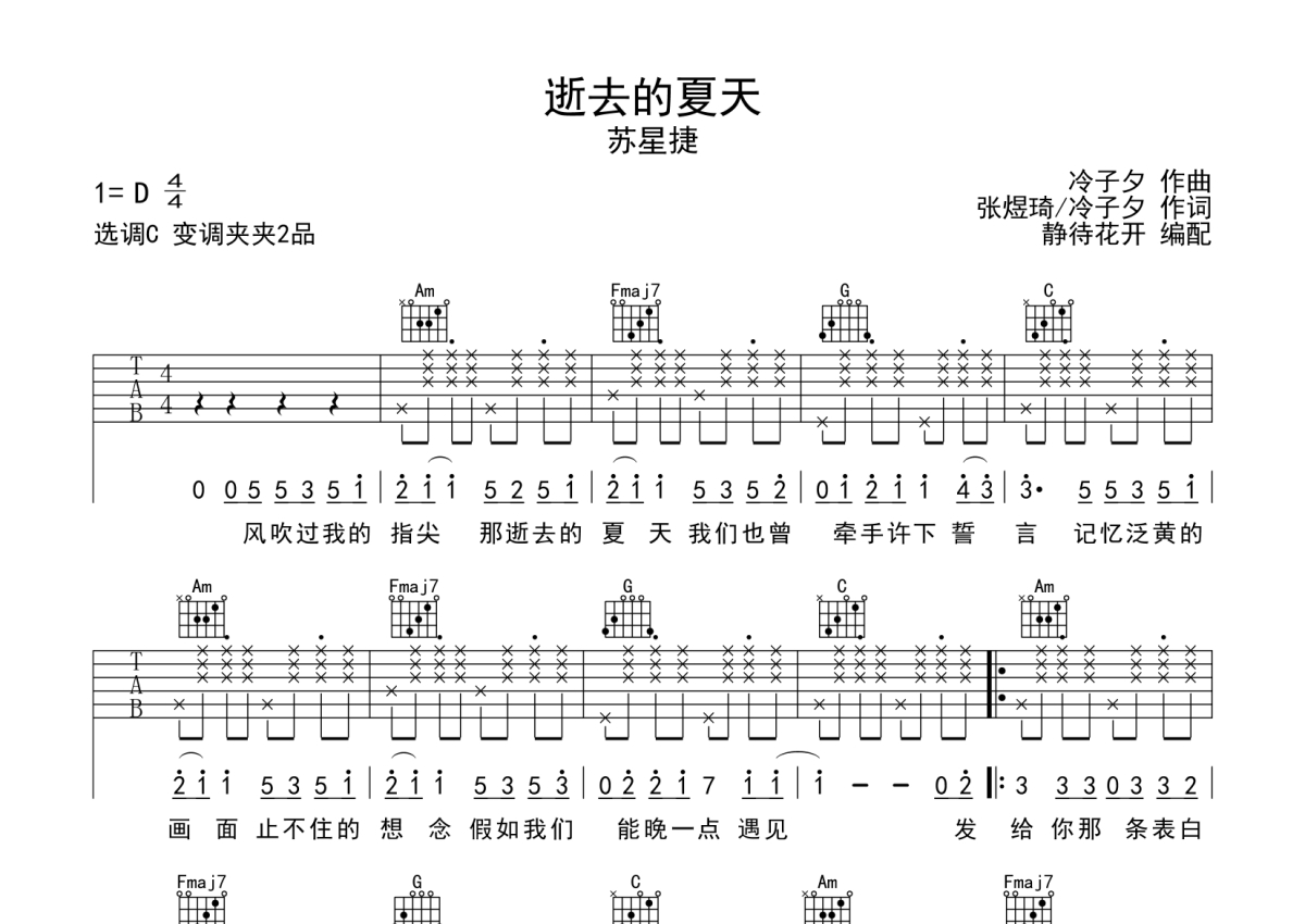 苏星捷《逝去的夏天》吉他谱 - C调弹唱六线谱