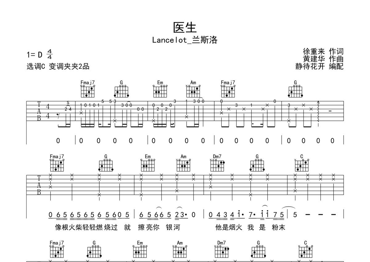 Lancelot_兰斯洛《医生》吉他谱 - C调弹唱六线谱