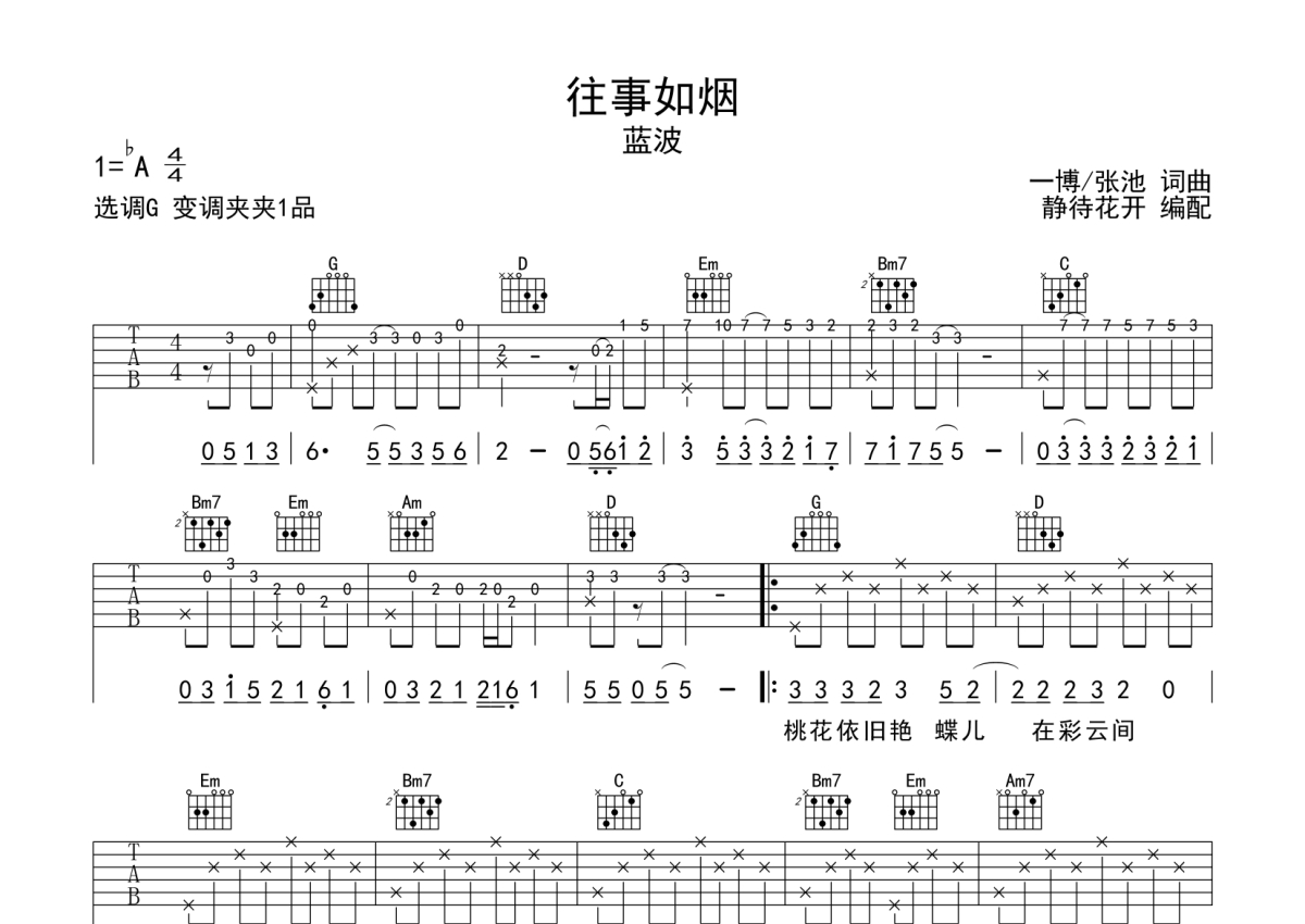 蓝波《往事如烟》吉他谱 - G调弹唱六线谱