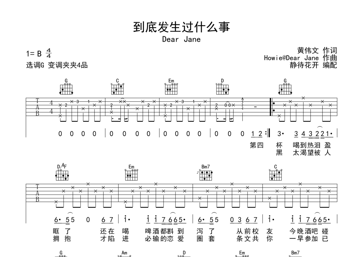 Dear Jane《到底发生过什么事》吉他谱 - G调弹唱六线谱