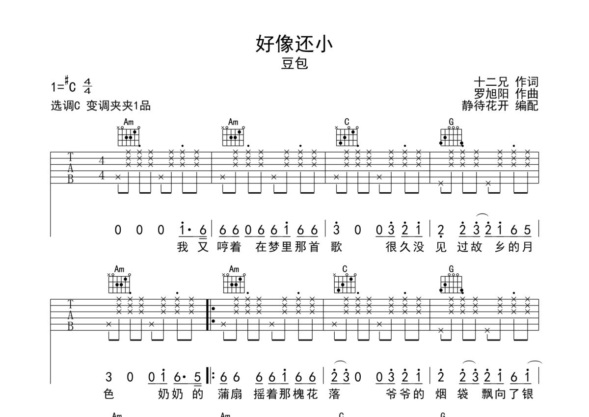 豆包《多想还小》吉他谱 - C调弹唱六线谱