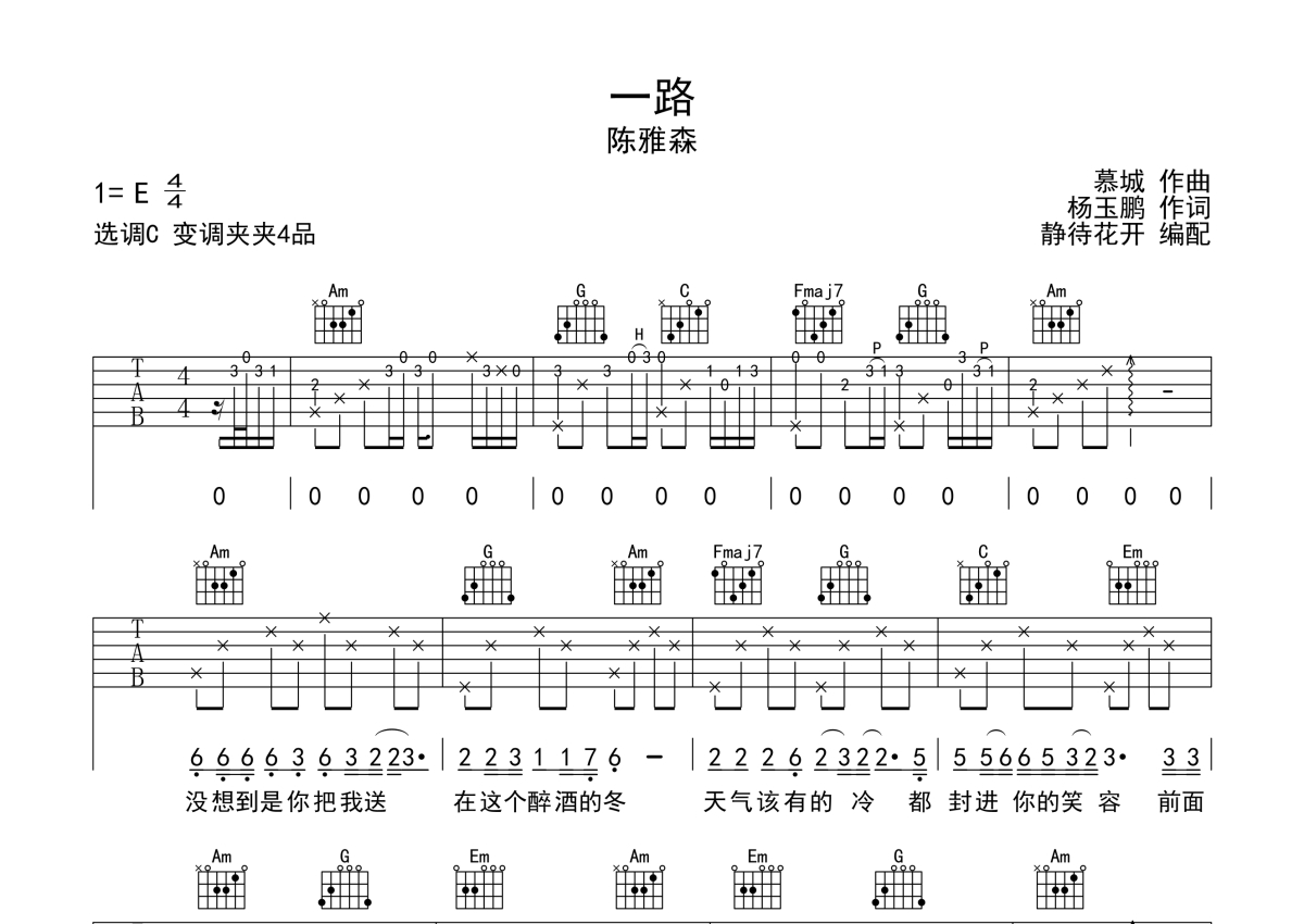 陈雅森《一路》吉他谱 - C调弹唱六线谱