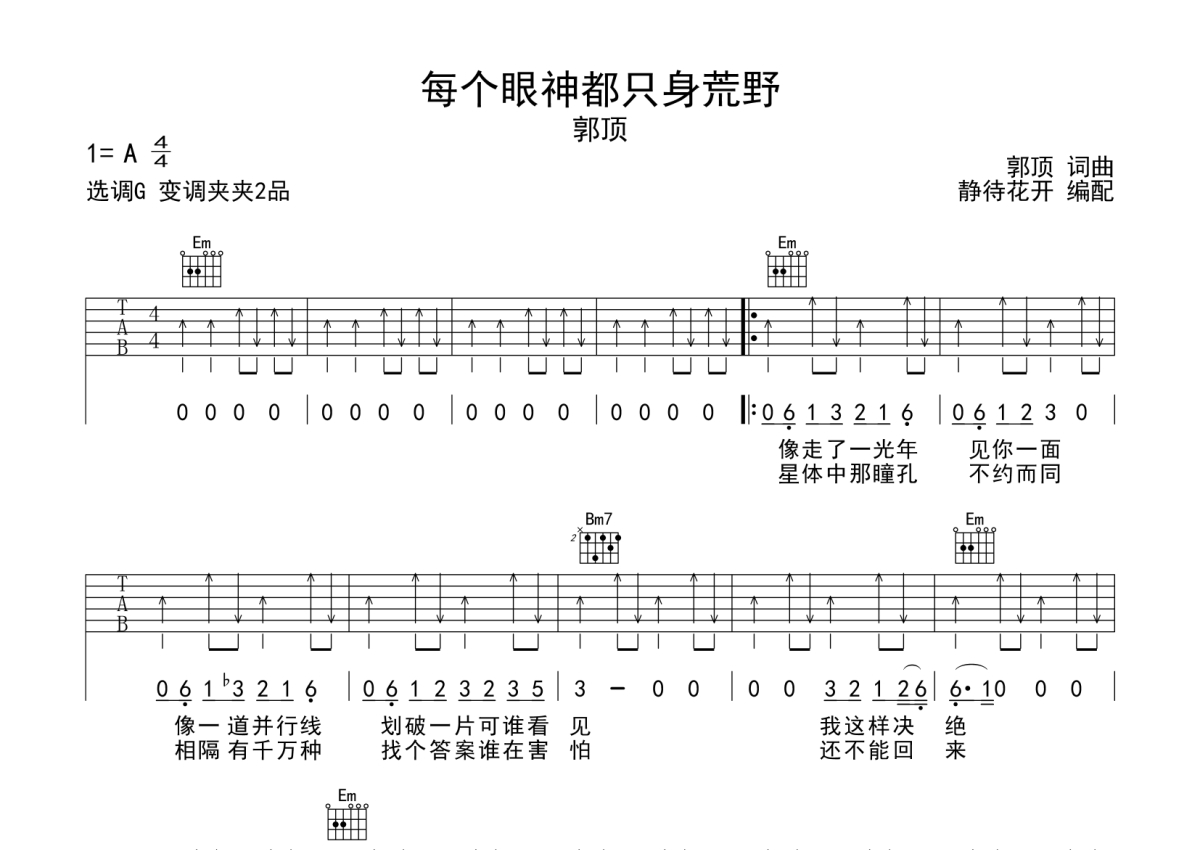 郭顶《每个眼神都只身荒野》吉他谱 - G调弹唱六线谱