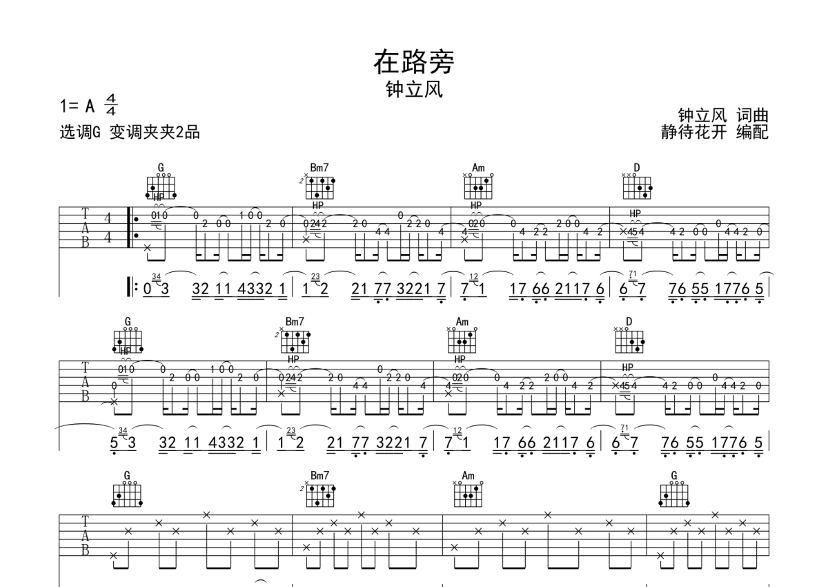 钟立风《在路旁》吉他谱 - G调弹唱六线谱