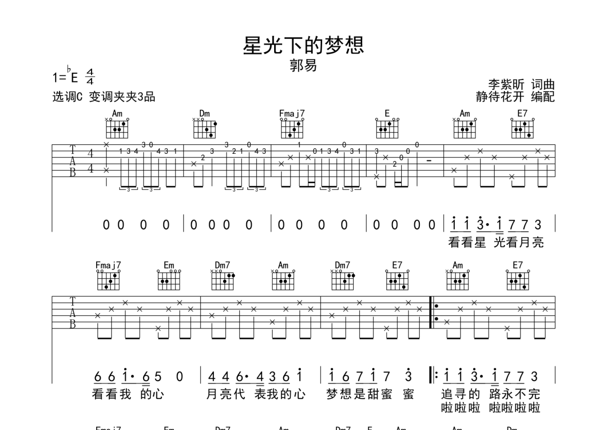 郭易《星光下的梦想》吉他谱 - C调弹唱六线谱