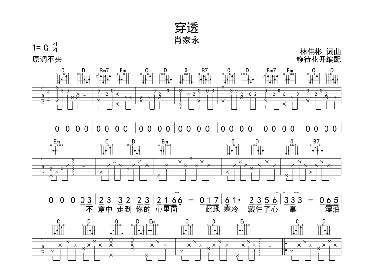 肖家永《穿透》吉他谱 - G调弹唱六线谱