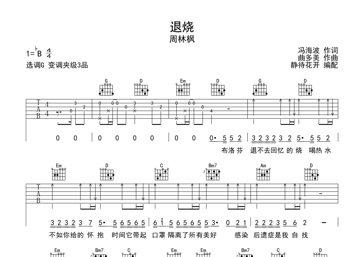 周林枫《退烧》吉他谱 - G调弹唱六线谱
