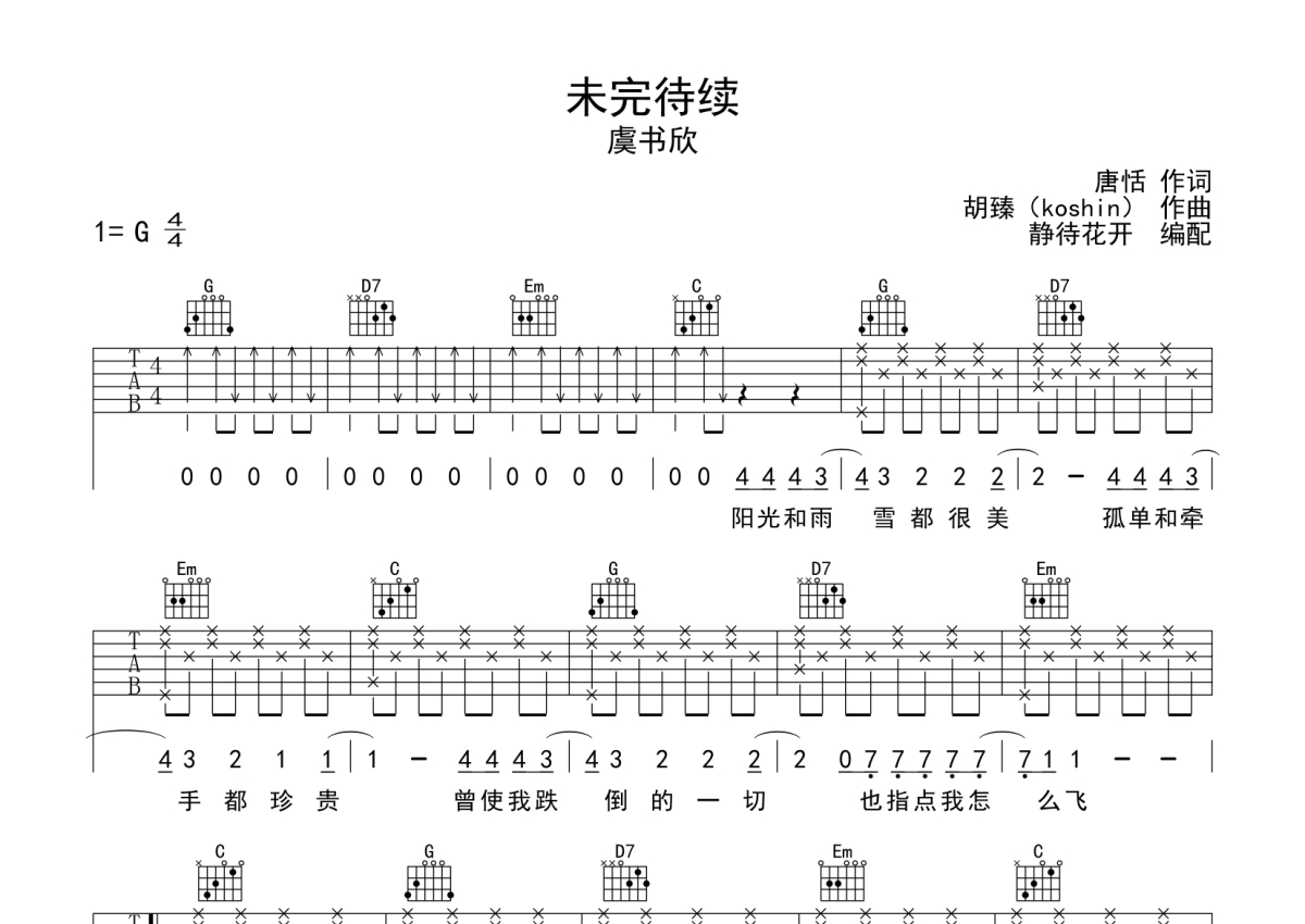 虞书欣《未完待续》吉他谱 - G调弹唱六线谱