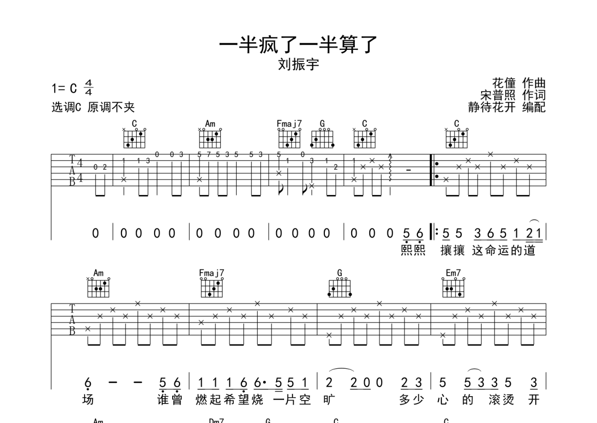 刘振宇《一半疯了一半算了》吉他谱 - C调弹唱六线谱
