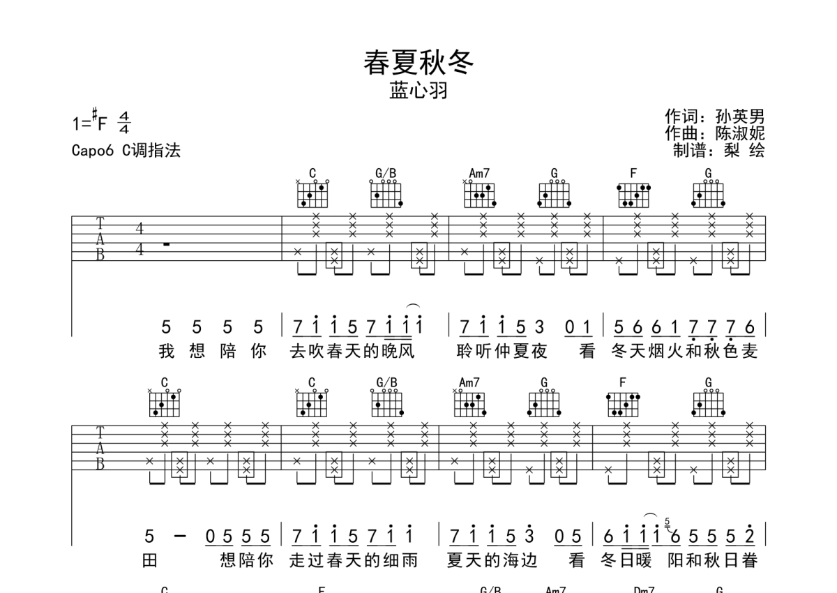蓝心羽《春夏秋冬》吉他谱 - 弹唱六线谱