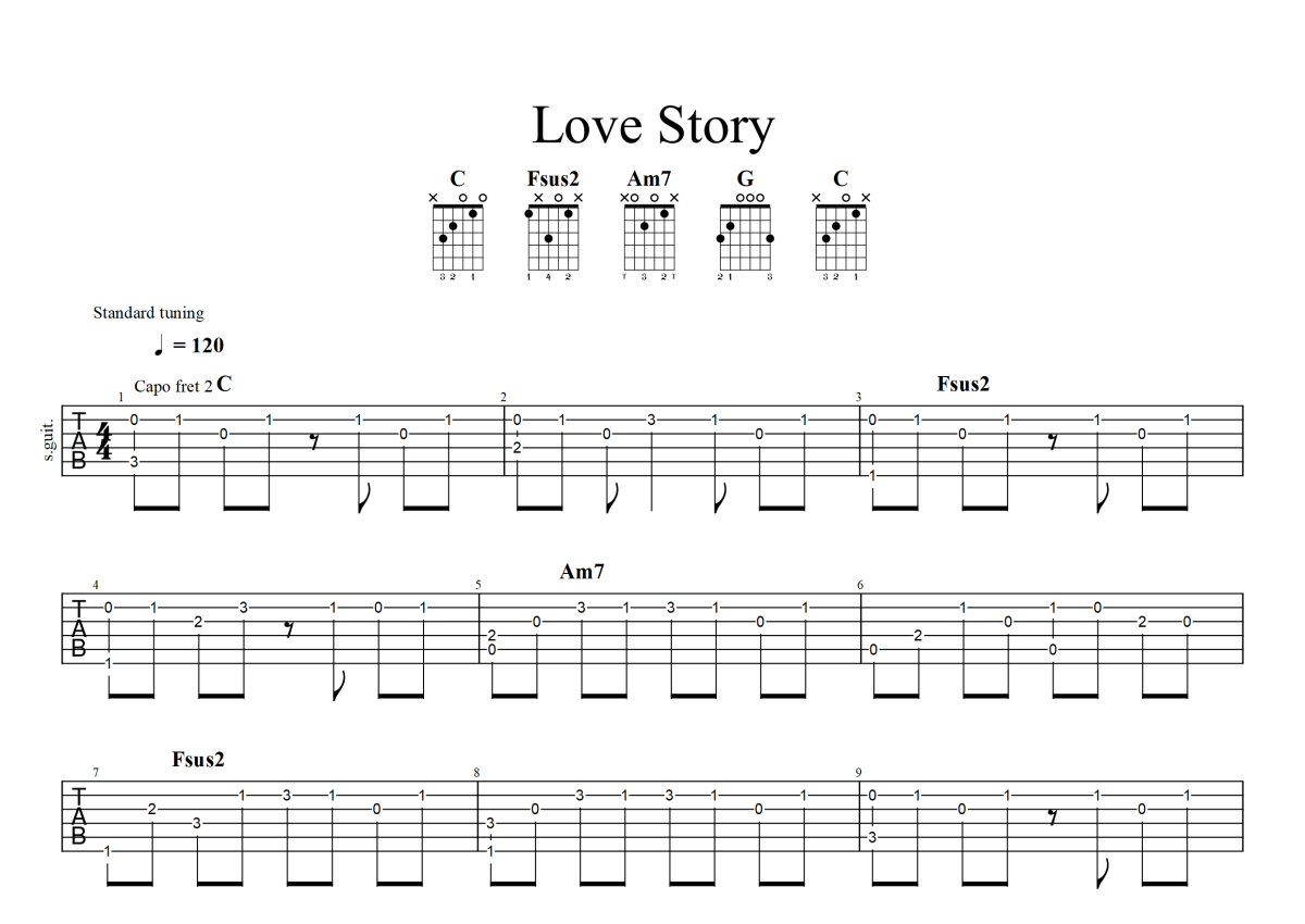 泰勒斯威夫特《Love Story》吉他谱 - D调独奏六线谱