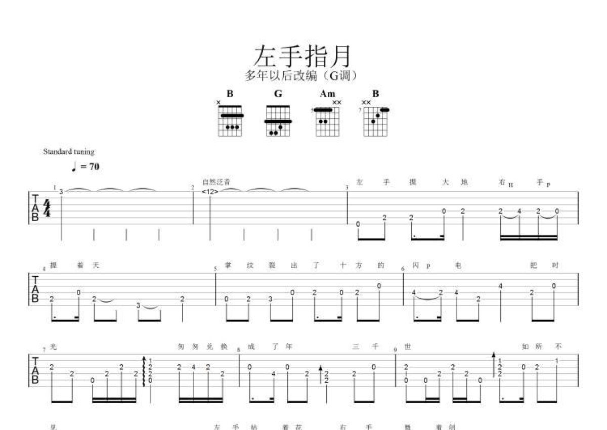 萨顶顶《左手指月》吉他谱 - G调独奏六线谱