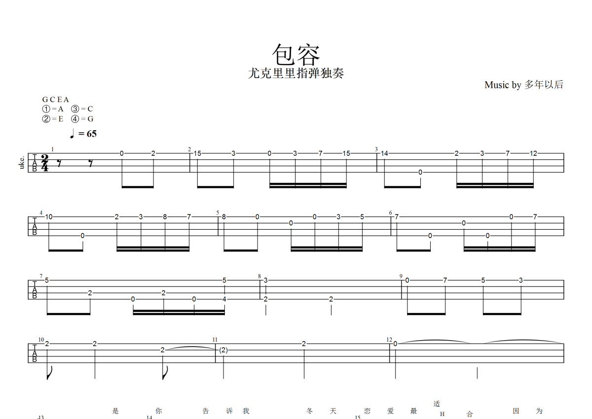 郑源《包容》尤克里里谱 - C调尤克里里谱 - 指弹谱