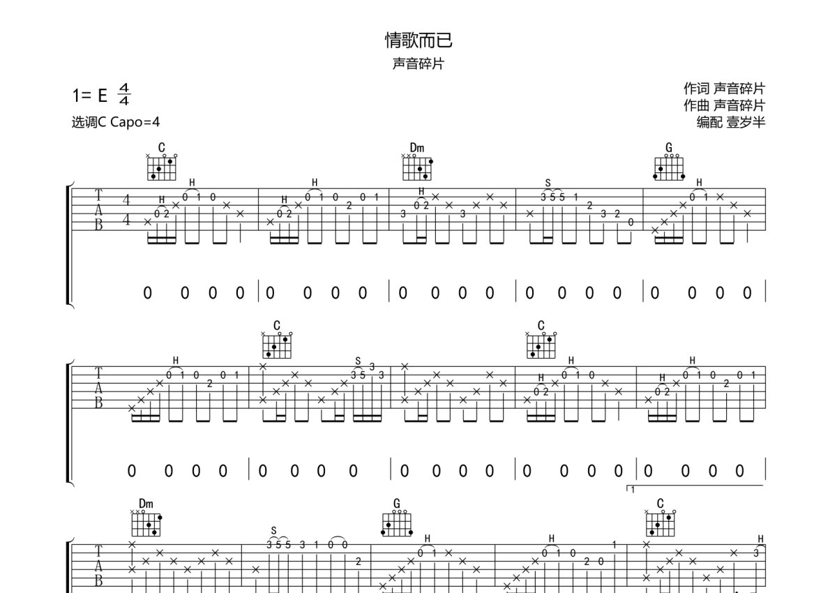 声音碎片《情歌而已》吉他谱 - C调弹唱六线谱