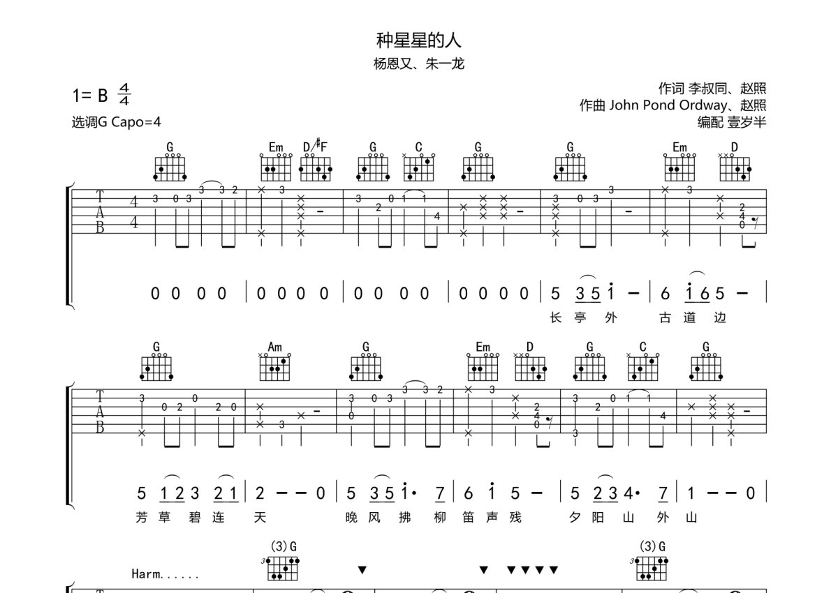 杨恩又、朱一龙《种星星的人》吉他谱 - G调弹唱六线谱
