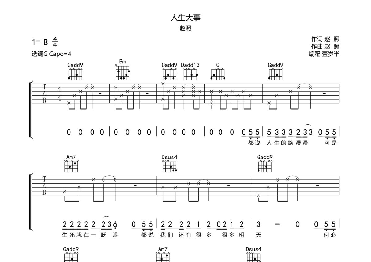 赵照《人生大事》吉他谱 - G调弹唱六线谱