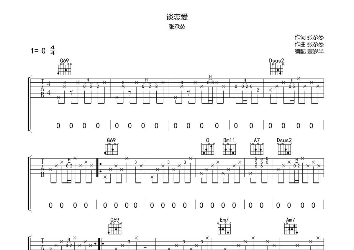 张尕怂《谈恋爱》吉他谱 - G调弹唱六线谱